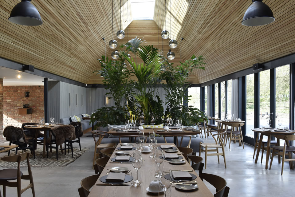 The Woodspeen is the epitome of pared-down style. Step inside and you emerge into an impressive ‘Nordic’ stylised dining extension with a wall of bi-folding glass doors and an open plan kitchen. The original part of the building remains as the public house, updated but retaining its charm.  A wonderful wooden-slat ceiling with large skylight, faux fur throws over seating and polished concrete floors offer elegance, comfort and warmth.  A perfect setting for the culinary brilliance of one of the UK’s great chefs, John Campbell, formerly from the nearby Vineyard where he achieved two Michelin stars and Coworth Park.