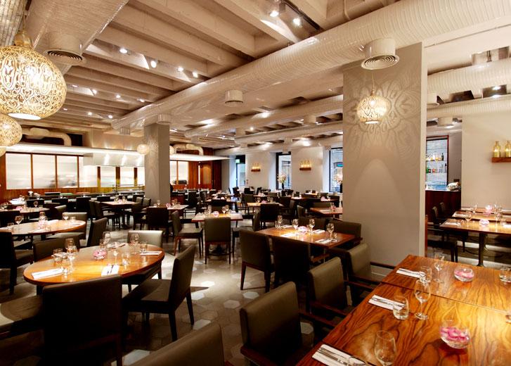 The interior is a fascinating mix of textures and lighting. Inspired by the geometric patterns commonplace in historic Indian architecture and the tactile feel of traditional Indian materials, Cinnamon Kitchen offers a unique setting.