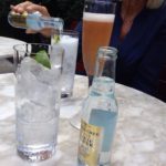 We were slightly high with our booking coup of the year and managed to turn up a whole 45 minutes early (they apparently now have a reservations lockdown till September so we wanted to maximise every sleb-spotting minute). The rain seemed to be falling mainly on the Glasto plain (snigger) and blue skies lit up the Marylebone skyline so we chanced our arm at getting a seat in the pretty shrub enclosed terrace for a pre-dinner cocktail. The beautiful gate keeper was wielding a clipboard like a light saber – ready to cut down anyone who dared turn up without a booking. We grinned inanely whilst telling her we indeed had a booking and followed her jumpsuit encased bottom to a delightful corner bench.