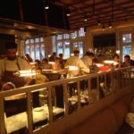 Inside the restaurant is laid out in brasserie style with leather banquette booths and open kitchen. The raised booths at the sides are definitely the ‘statement tables’ with the area in the middle being more cramped and noisy. We were lucky enough to have a fantastic round table in a side booth with a great view over the room, bar and kitchen. I tried hard not to be pushy in suggesting that we all tried something different so I had plenty to write about it, but actually apart from the red prawn starter we all made individual choices so I can give you a fair opinion of the menu.