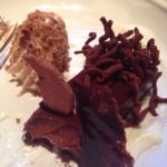As we needed to put a candle in a pudding for certain someone, we all ordered desserts(all £9) and once again the results were mixed. Birthday girl had the star pudding of Carrot Chiltern with cake crumbs, carrots and horse raddish icecream. On first mouthful it tasted divine but by the third spoon the saltiness in it made it challenging – we all tried and concurred. Nevertheless it came with a candle and a hand piped plate saying happy birthday so that made up for it. Note – the parrot was an added extra by us…