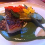 Now our problem child – Blister had ordered the Wood Grilled Aged Ribeye, Isle of Wight tomatoes, chimichurri (36)  but the waitress came back to say it was now Fillet and was that ok as they alternated them. This seemed a strange explanation to me as Ribeye is nothing like Fillet and if you are a fan of one it doesn’t mean you will like the other. Blister was gracious however and accepted the Fillet cooked medium well. When it arrived she went very quiet as we gushed over our main courses and then looked up and declared that she definitely wasn’t eating Fillet. We all had a look and it certainly didn’t look the texture of Fillet. To add to the confusion the mint in the chimichurri made her think of lamb instead of beef so her tastebuds were all over the place. She called over our very hard-working waitress who said she would check the cut of meat with chef and came back to confirm it was best Fillet. Blister was not convinced and after attempting to chew her way through a few more mouthfuls she gave up and we asked the waitress for a chat with the manager. After asking three times to see him by the time the manager eventually came over all of our main courses had been cleared and he told us he was ‘unable to comment’ as there was no longer food to check – not really our fault! No explanation was offered but the dish was not included on our bill which made up in part for it.