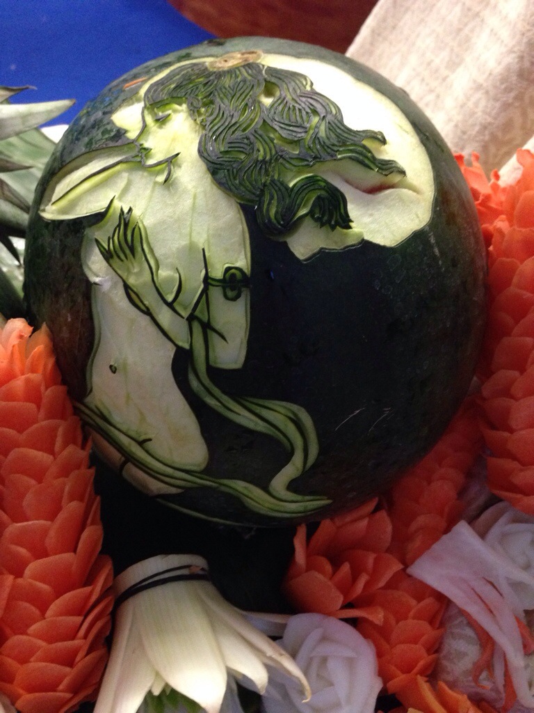 We left the Roblets happily scoffing free noodles in the Taste of Thailand area with its stunning fruit sculptures – such amazing artwork that you’d rather frame than eat! They then went on to eat the Gai Yang Som Tum at Mango Tree – Grilled boneless corn-fed chicken tight marinated in black pepper, garlic and coriander served with papaya salad. This went down very well with one daughter but the other thought it was weird, not being used to eating fruit with chicken, and that it why it is such a good event to take kids to so they can try out all these great new flavours.