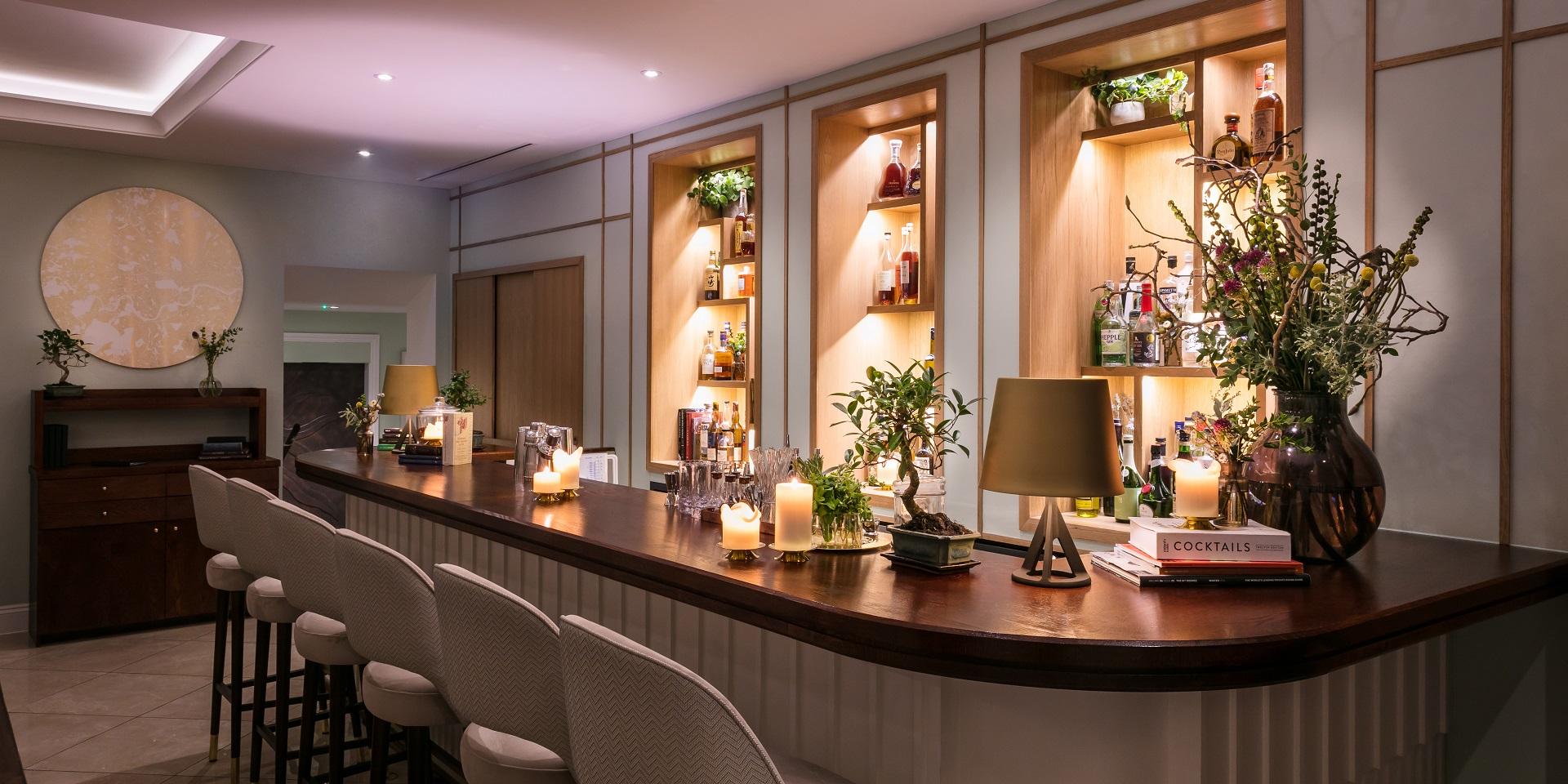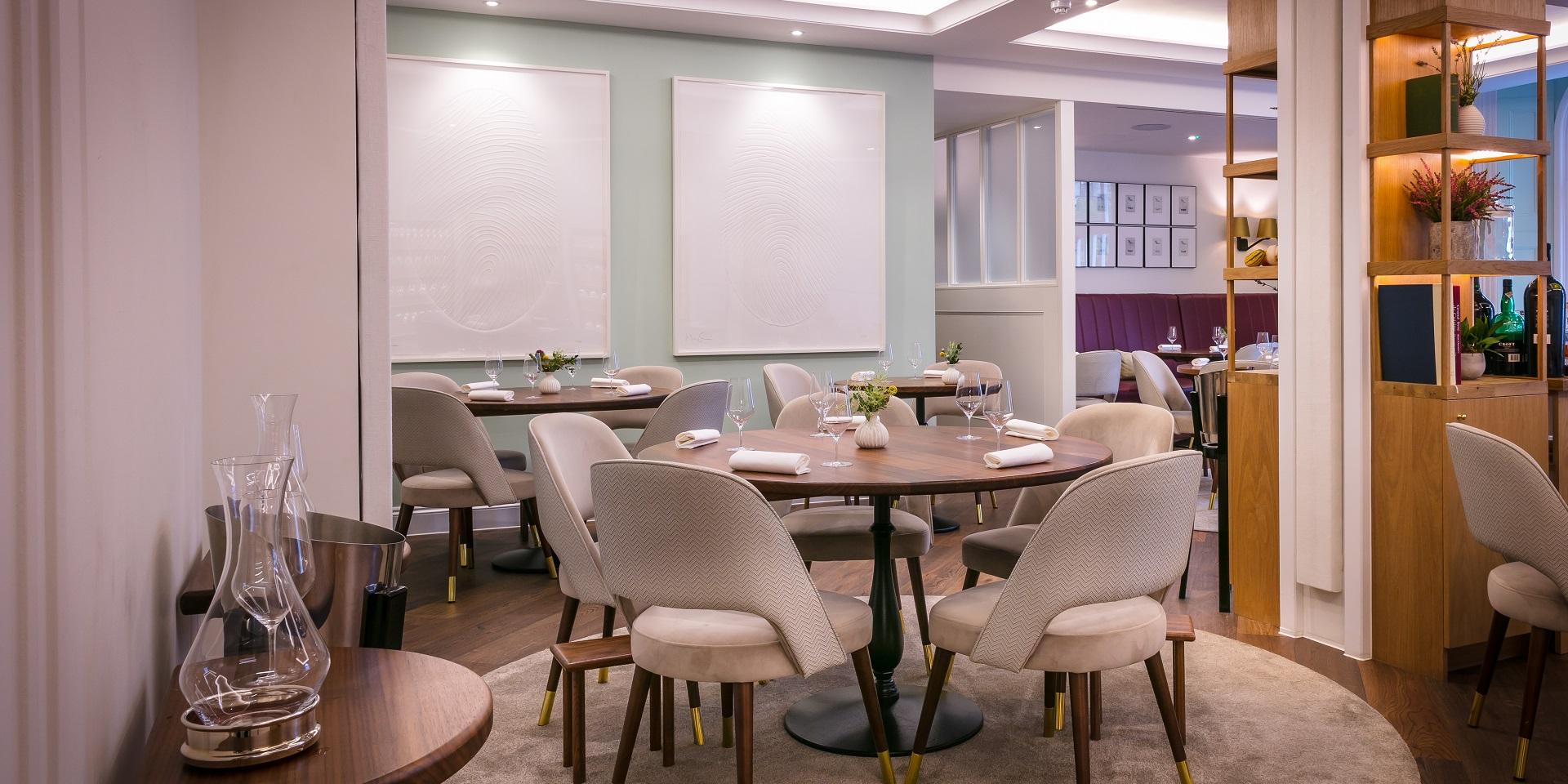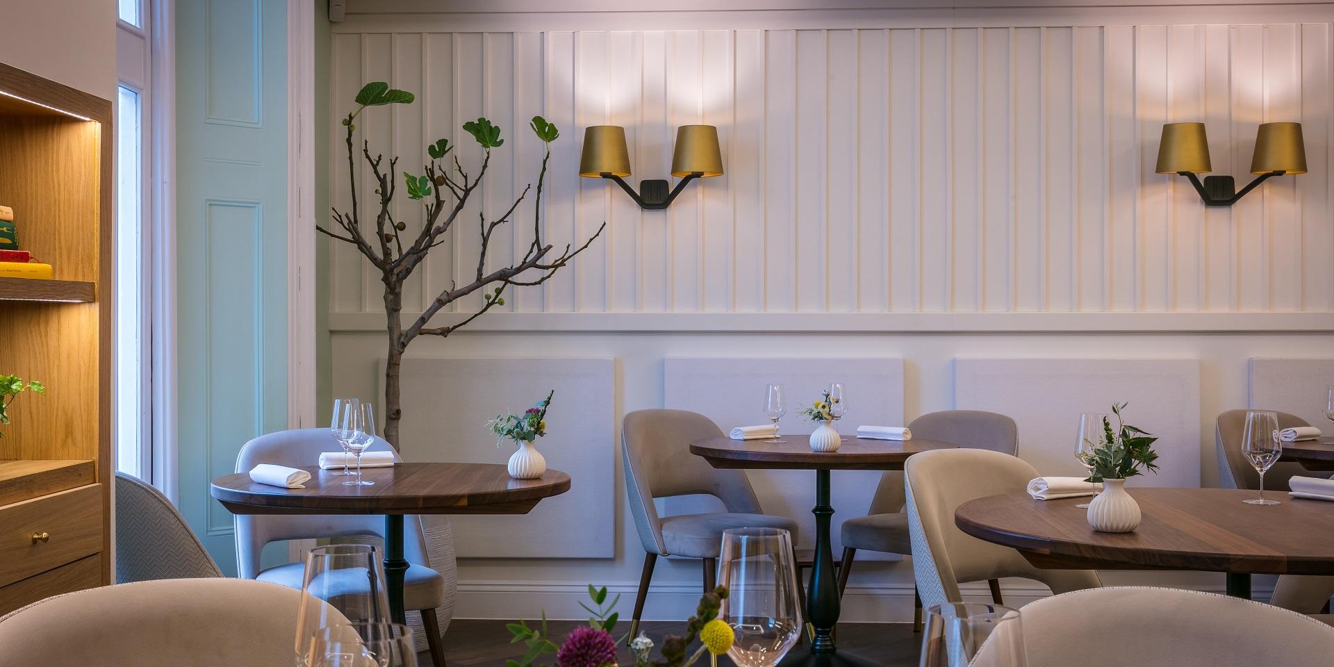 The interior design centres around a colour palette of stem green, aubergine, almond milk, copper and burnished gold, with a window overlooking a feature living wall. Seats 54 covers in total.