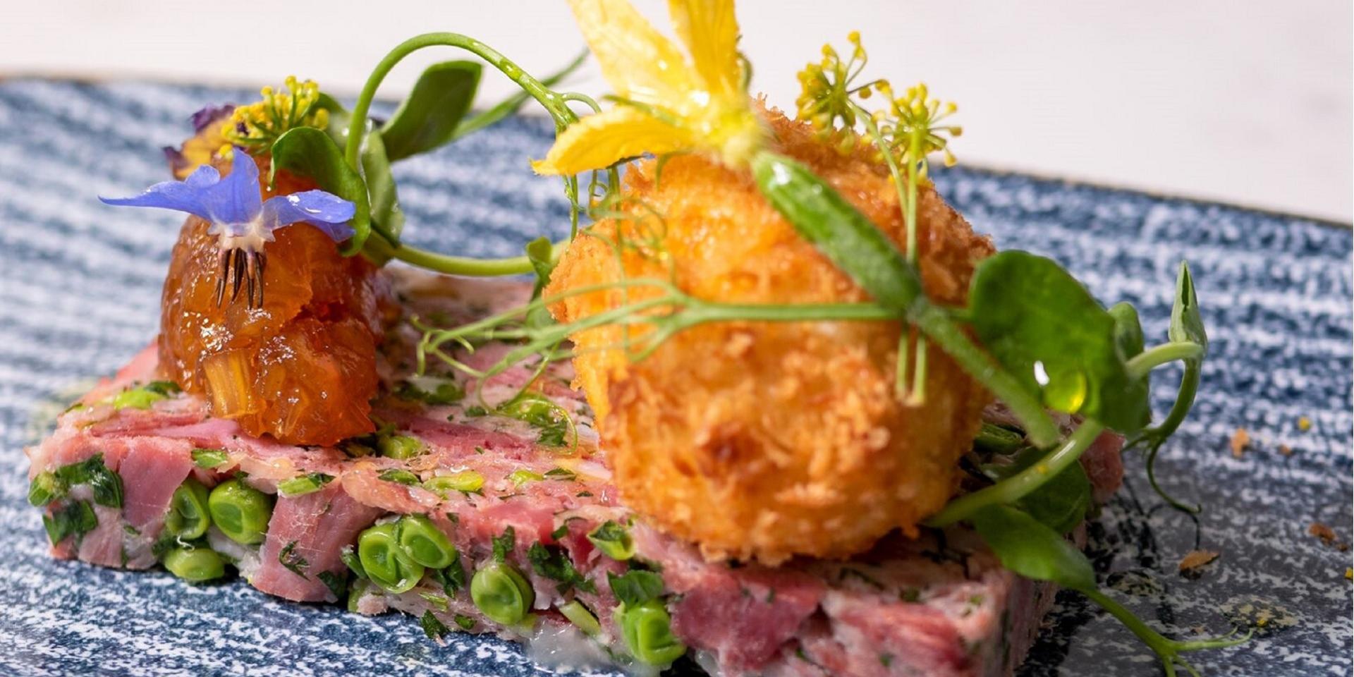 Executive Head Chef Dave Ashton has created a celebrational menu taking traditional and classic dishes and updates them with a modern twist. Stand-out dishes include Dave's personal favourite the Beef Wellington which is brought to the table and showcased by the chef before being sliced. Bakes in mushroom duxelles, Parma ham, with puff pastry and Madeira sauce, it is one of a number of dishes to share between two.